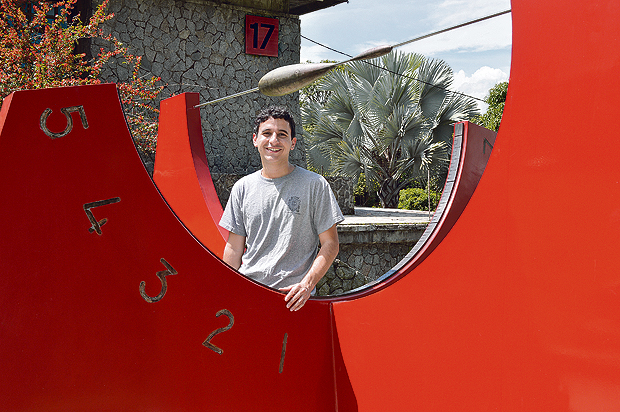 Este reloj con carátula de 2 metros de diámetro fue diseñado originalmente para la estación Universidad del Metro de Medellín, cerca del Planetario de la ciudad. Años después fue trasladado a la Estación Madera, donde el Sol apenas si alumbraba por ser una zona arborizada. El profesor Jorge Iván Zuluaga lo rescató y fue trasladado a la Universidad de Antioquia, cerca de la sede del Pregrado en Astronomía. Nicolás Gómez Giraldo, el primer astrónomo graduado en la Universidad de Antioquia, posa junto al reloj para dar escala.